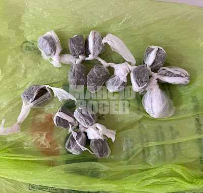 Os policiais perceberam quando o suspeito durante a fuga jogou uma bolsa plástica de cor verde, que foi encontrada e no interior havia 15 big bigs de maconha.