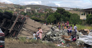 Populares saquearam parte da carga que trata-se de garrafas e purificadores.