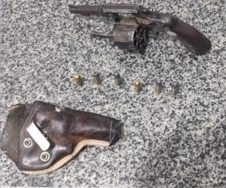 Os policiais observaram um volume na cintura dele e ao tentar realizar abordagem ele reagiu e jogou o revólver calibre 32.