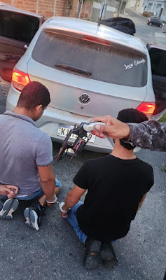 Na tarde de terça-feira (12/03/2024), o DISQUE DENÚNCIA AGRESTE (3719-4545 ou 98256-4545 Whatsapp) recepcionou a informação de que na Rua Capitão Dé, no Bairro Santa Rosa, teria um veículo (Gol Prata Placa KIH- 1I99) com dois indivíduos armados, onde um empresário seria alvo de sequestro. De imediato este Órgão repassou a denúncia para o 1° BIEsp e as equipes RC4220 e RC4551 se deslocaram ao local em questão, onde visualizaram o veículo suspeito com os dois indivíduos e após abordagem encontraram um revólver calibre 38, com seis munições intactas. Além da referida arma de fogo e munições, também foram apreendidos o veículo, duas placas de veículos e dois aparelhos celulares.