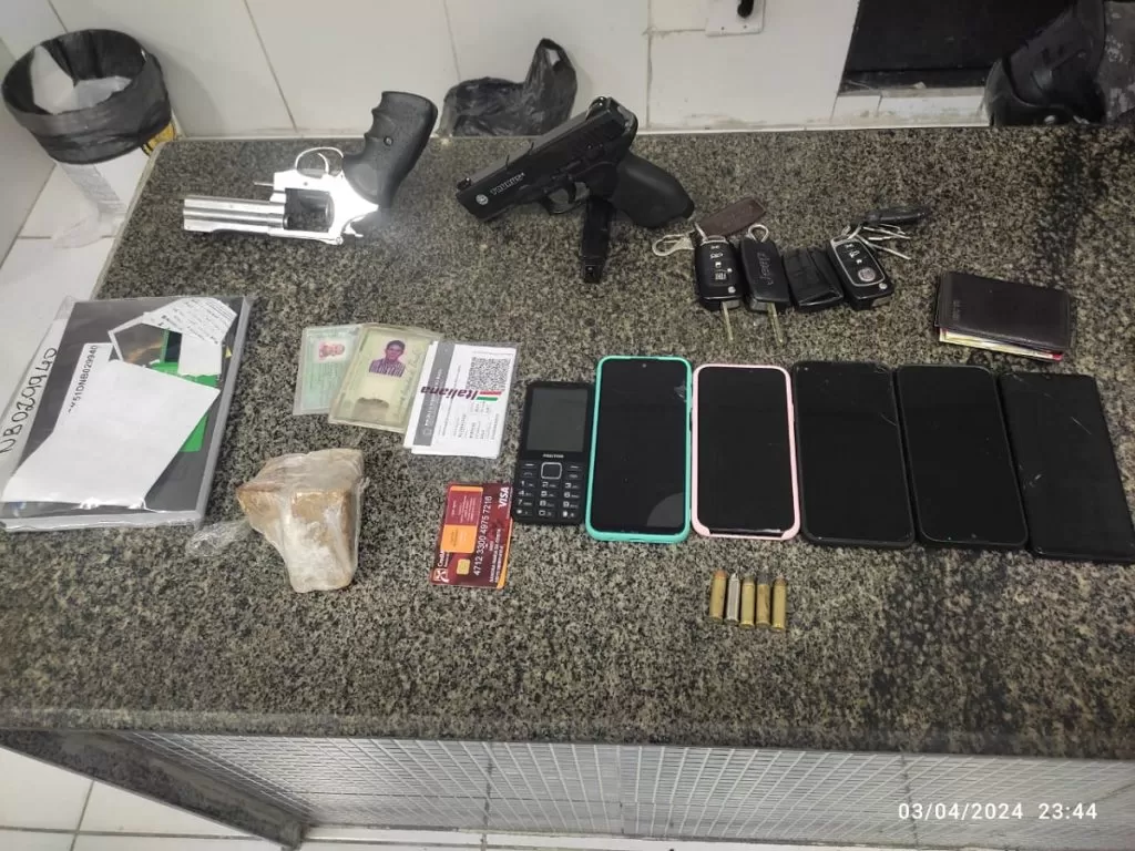 No total, foram apreendidos com o grupo um revólver calibre 38 com cinco munições, um simulacro de pistola, seis celulares, uma carteira com documentos da vítima, 250g de crack, um Fiat Cronos e um Fiat Toro. A ocorrência foi apresentada à Polícia Civil, para adoção das medidas legais cabíveis.