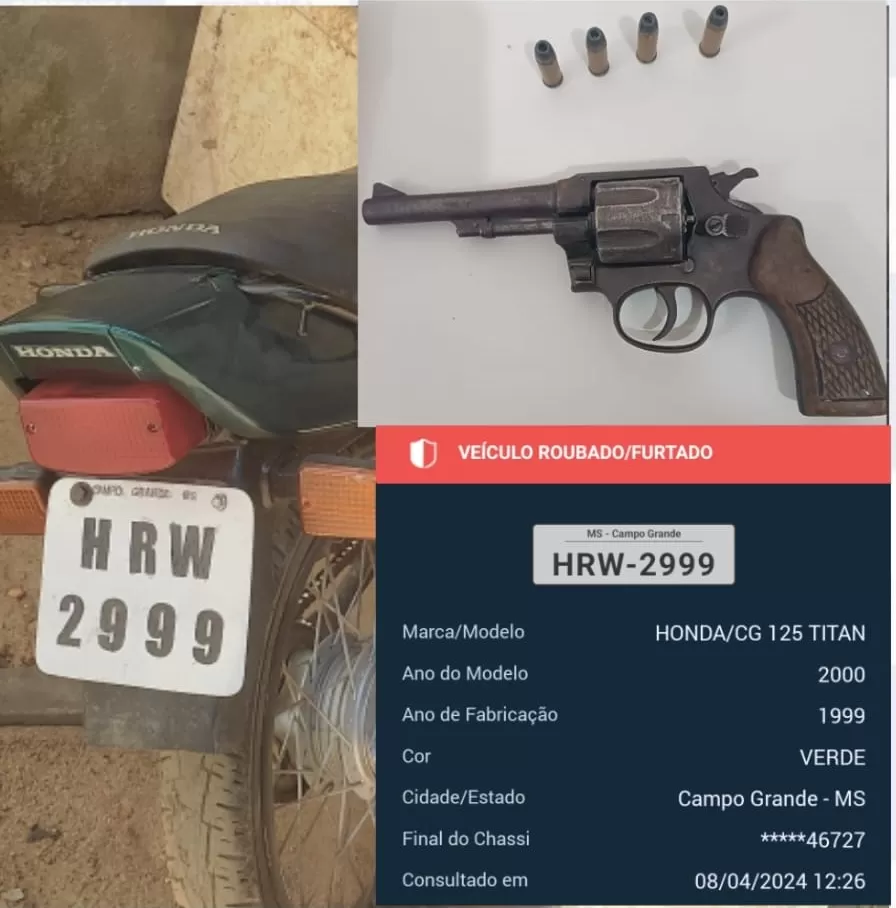 Além da arma de fogo os policiais constataram que a moto do elemento era roubada, ele foi conduzido para a 9ª Delegacia de Atendimento a Mulher, onde foi autuado em flagrante.