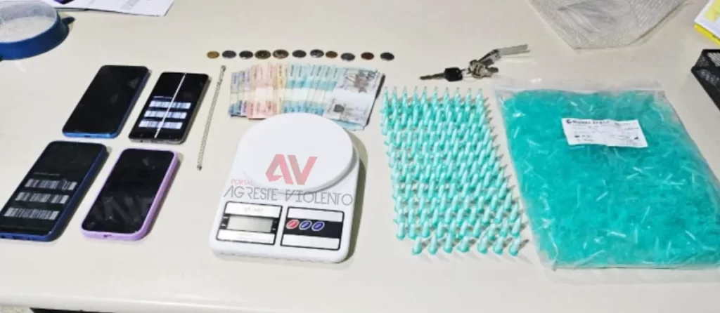 O efetivo do GATI apreendeu vários pinos de cocaína e prendeu quatro pessoas envolvidas com tráfico de drogas em São Bento do Una/PE, na noite de segunda-feira, dia 8.