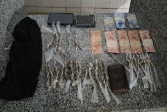 Um dos indivíduos conseguiu se evadir, os outros dois foram abordados e com um deles a polícia encontrou 90 big bigs de maconha, 60 pedras de crack, 01 bala clava e a quantia de R$ 56,00 em espécie.