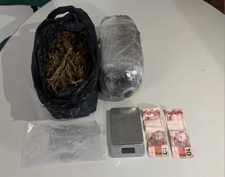 Durante a revista, os policiais encontraram uma mochila nas costas do indivíduo contendo uma quantidade considerável de maconha, totalizando 1.441 kg da substância, além de uma balança de precisão, dinheiro em espécie no valor de R$ 20,00 e diversos sacos plásticos utilizados para fracionar a droga.