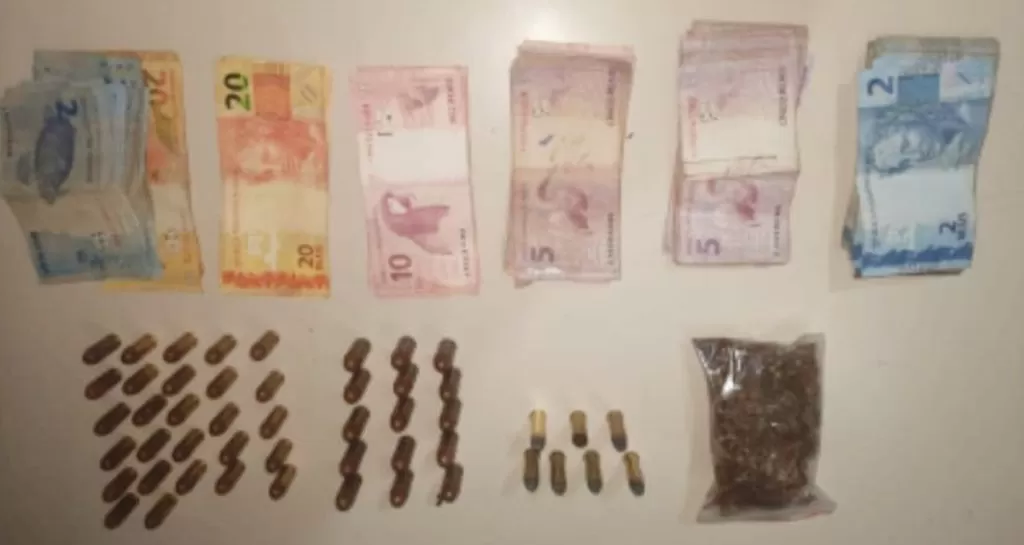 Questionada sobre o destino da droga, a mulher afirmou ser usuária e que a levaria para sua casa. Autorizados a revistarem o local, os policiais não encontraram mais drogas, porém descobriram diversas munições de diferentes calibres: vinte e sete de calibre 40, quinze de calibre 45 e seis de calibre 38, além de várias cédulas em dinheiro cuja procedência a mulher não soube explicar.