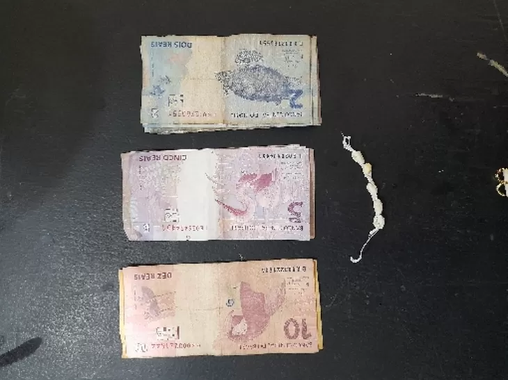 Com Mateus a PM encontrou cinco pedras de crack e uma quantia em dinheiro, com o amigo foi encontrado uma quantia que ele informou que seria para pagar uma pedra.
