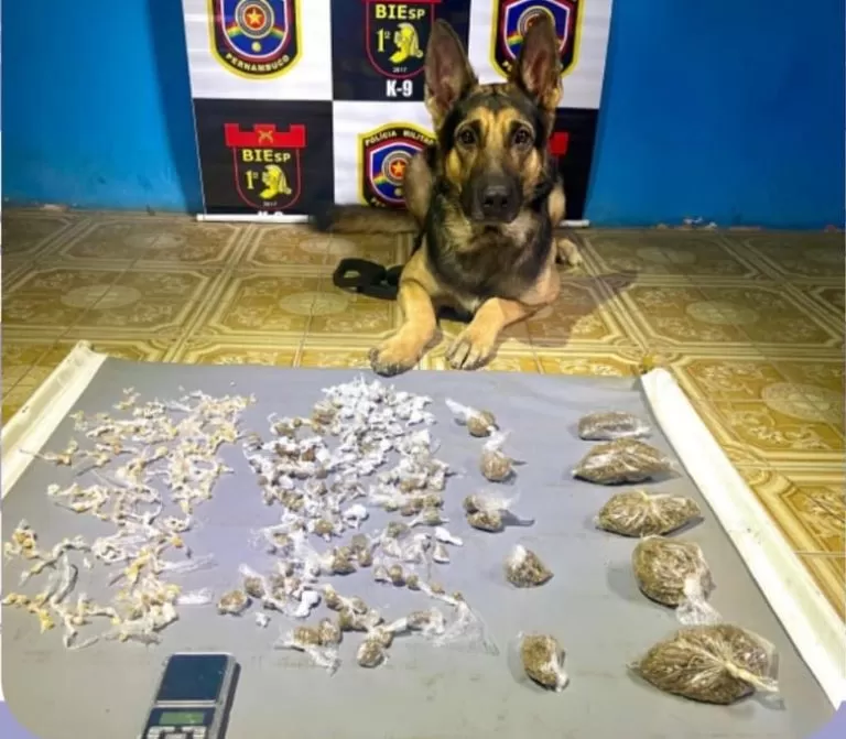 Equipes policiais, em cumprimento de ordem de serviço, seguiram até a unidade prisional e durante a revista encontraram, com a ajuda de Danger, 321 pedras de crack, 226 big bigs de maconha e mais 10 porções da mesma droga, pesando 145g.