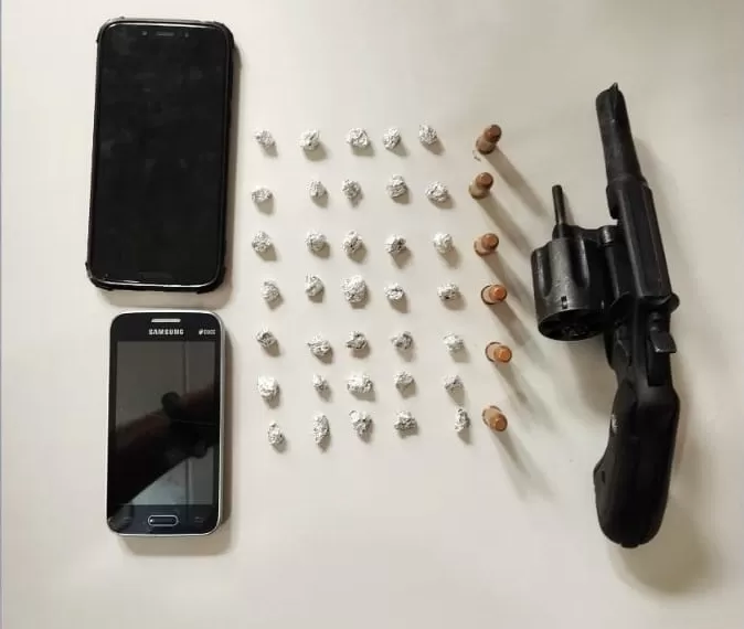 Com o meliante foi apreendido um revólver, ele disse ser o mesmo usado no homicídio que cometeu no dia 1º de maio em Bom Conselho, 35 pedras de crack e dois celulares.