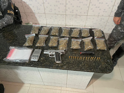 Na tarde desta quinta-feira (06), policiais da ROCAM do 1º BIEsp, apreenderam nas imediações do Sítio Terra Vermelha, na zona rural de Caruaru, 14 porções de maconha cada uma pesando 50 gramas da droga que totalizou 700 gramas do entorpecente e uma pistola calibre 380 com 15 munições intactas.