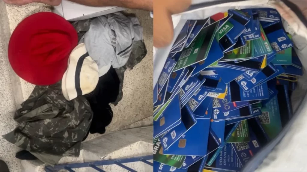 No local da abordagem, foram encontradas vestimentas utilizadas em crimes anteriores, como chapéu tipo pescador vermelho, camisa tipo gandola camuflada, chapéu tipo panamá branco e agasalho preto, além de um saco contendo centenas de cartões da Caixa Econômica, cuja origem o indivíduo não soube explicar. Diante dos fortes indícios de autoria, ele foi conduzido à DP de Boa Viagem para que fossem adotadas as medidas cabíveis.