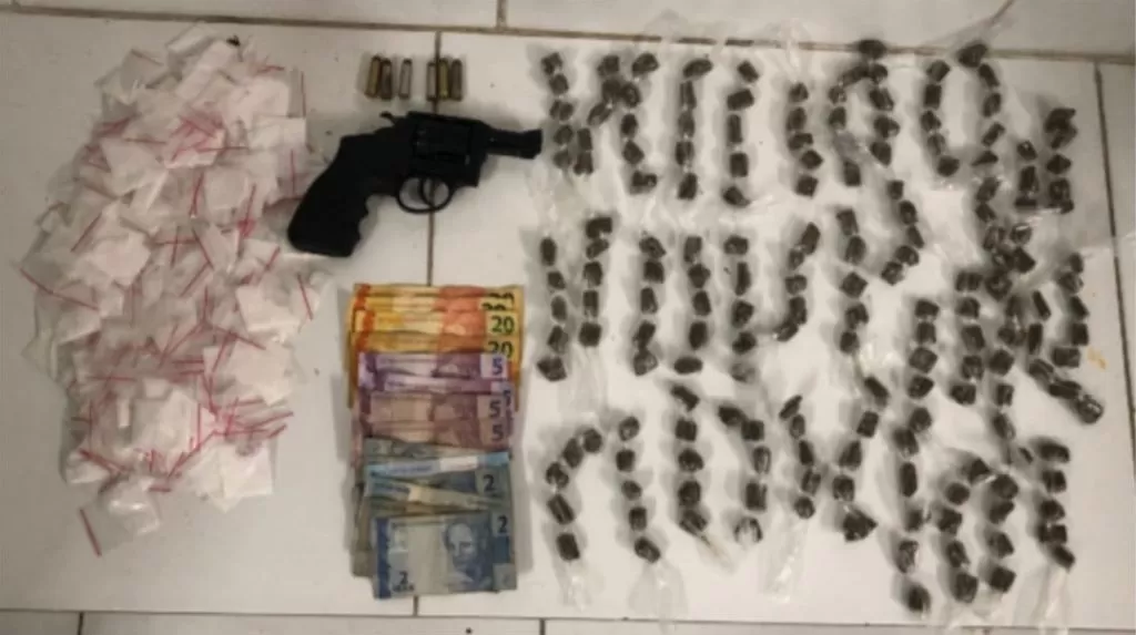 Policiais militares da Companhia Independente de Policiamento com Motocicleta (CIPMoto) prenderam um homem, na tarde deste sábado (15), com um revólver calibre 38, 237 saquinhos de cocaína e 180 bigs de maconha. A ação foi no bairro do Fundão, em Recife.