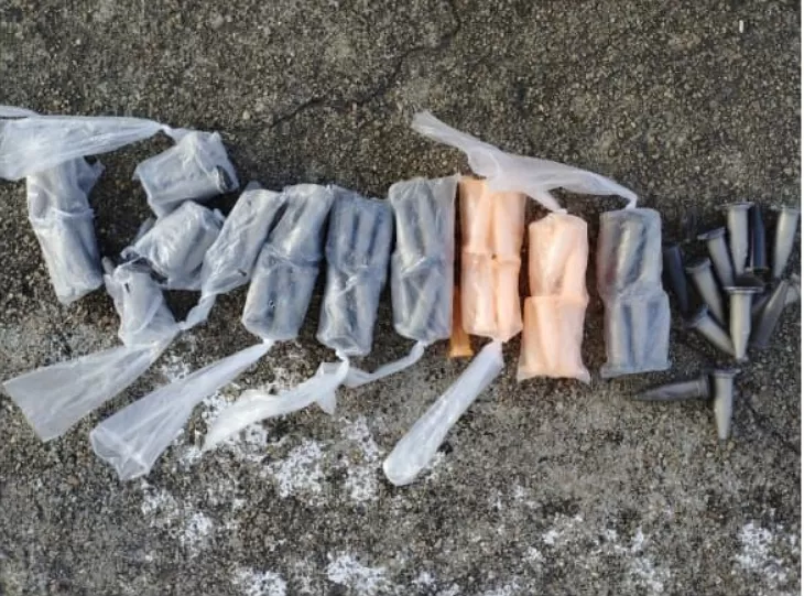 A suspeita se confirmou quando os policiais procederam com a busca no veículo do indivíduo, onde encontraram uma faca tipo peixeira e 95 pinos contendo cocaína.