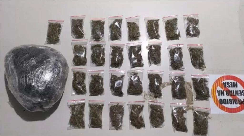 Indagado sobre a possível existência de mais entorpecentes, o suspeito confessou ter escondido outras 10 porções menores e uma quantidade expressiva de 665g de maconha em uma propriedade no Sítio Batinga, localidade próxima.
