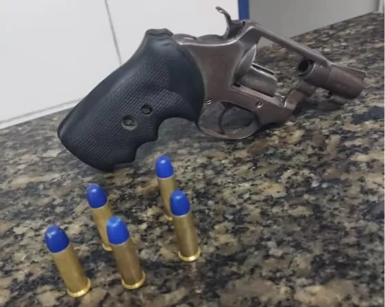 Com eles, foram apreendidos um revólver calibre 38, com cinco munições não deflagradas, e um veículo HB20.