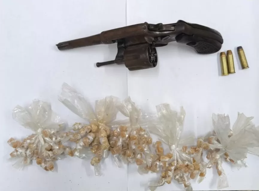 O material descartado, que incluía um revólver, três munições calibre 38 e 245 pedras de crack, foi recolhido e apresentado à Delegacia de Polícia para as providências necessárias.