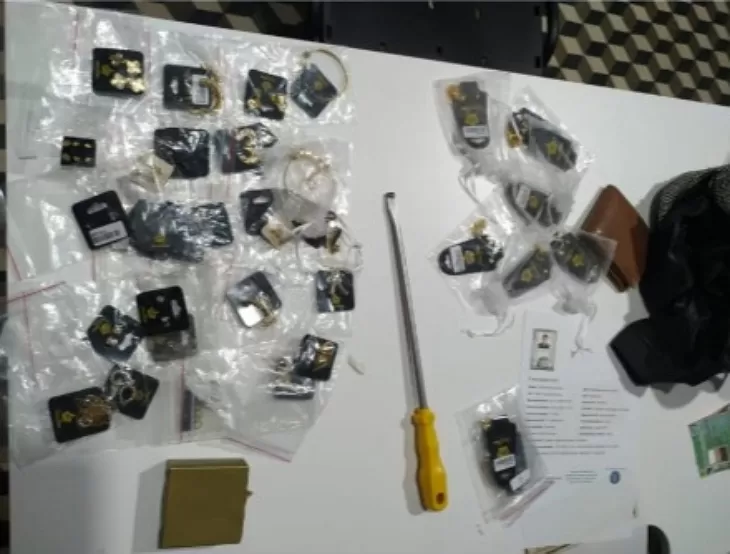 A equipe se deslocou para uma encruzilhada da PE-90 e interceptou o veículo, localizando o envolvido. Ele estava com uma bolsa contendo joias folheadas a ouro e uma chave de fenda grande. Ele foi apresentado na Delegacia de Bom Jardim, juntamente com o material subtraído, para a adoção das medidas cabíveis.