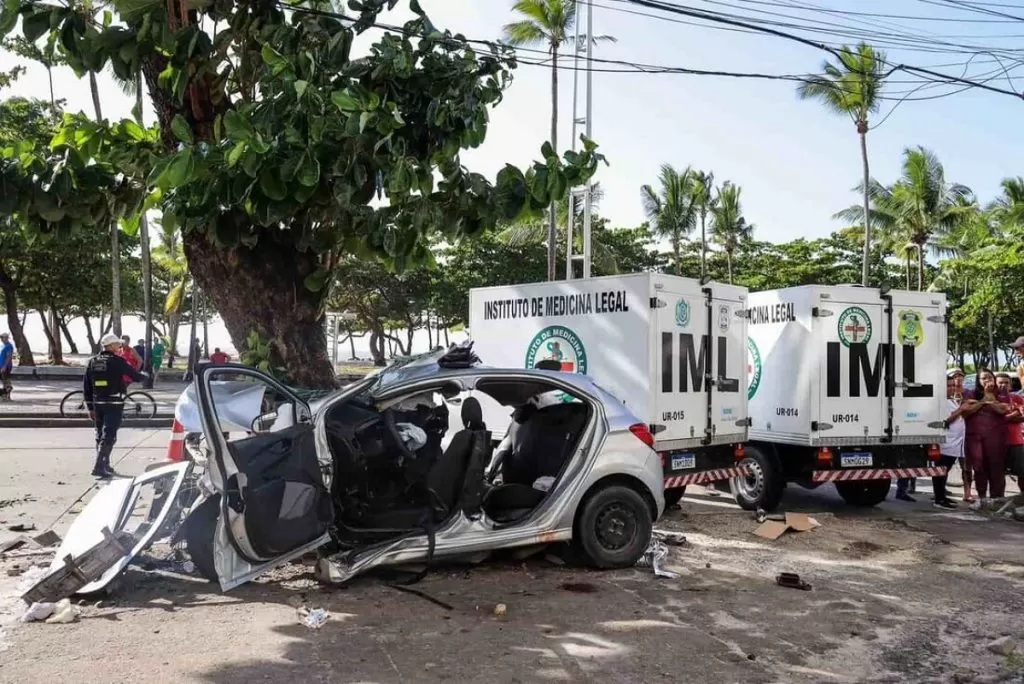 O veículo teria perdido o controle ainda no semáforo anterior ao local da batida. O Instituto de Medicina Legal (IML) terminou de recolher os corpos por volta das 8h30.