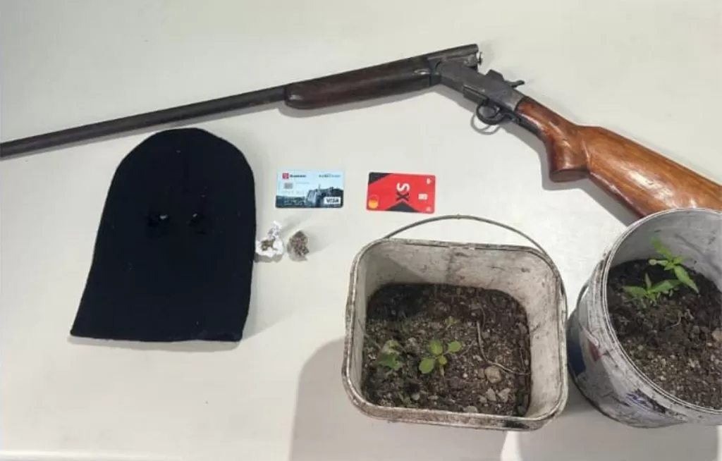 A investigação não parou por aí. Os policiais também se deslocaram até a residência da mãe do adolescente, onde encontraram três plantas de maconha cultivadas em vasos no quintal. Durante a busca no interior da casa, foram descobertos dois cartões de crédito pertencentes a diferentes titulares, além de uma touca ninja.