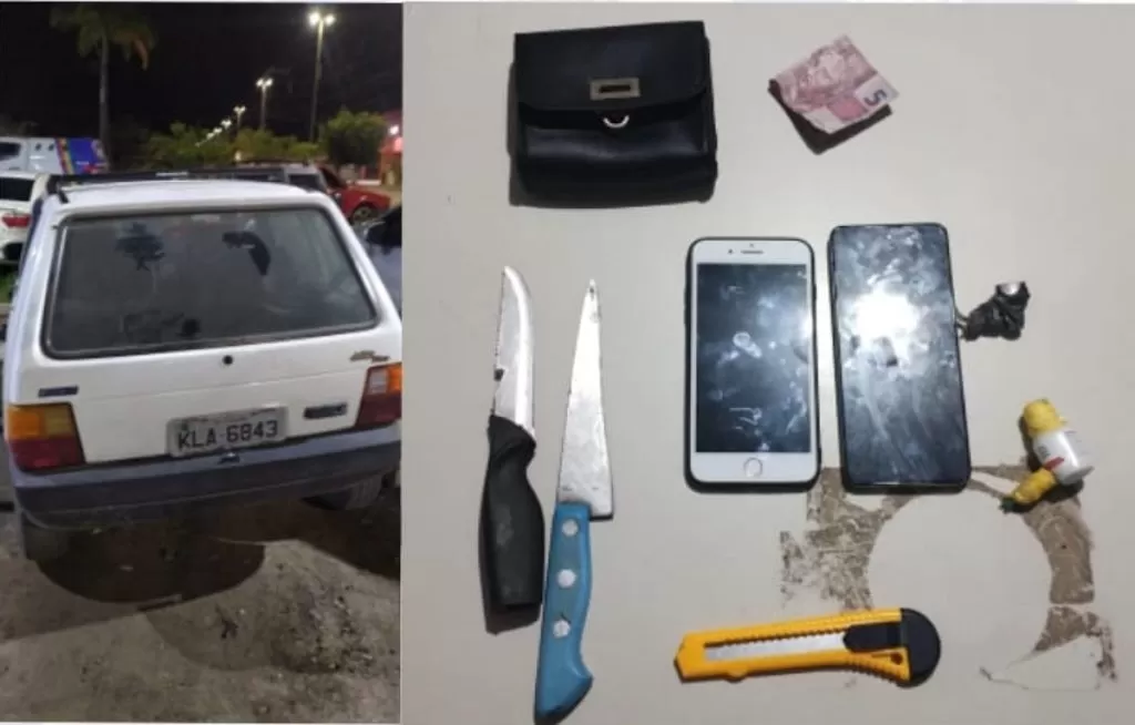 Durante a abordagem, foram encontrados dentro do veículo dois aparelhos celulares e duas facas, que teriam sido utilizadas para ameaçar as vítimas durante os delitos. O suspeito foi preso e encaminhado à delegacia de Belo Jardim, juntamente com os objetos apreendidos, para que as medidas legais fossem tomadas.