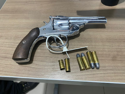 O Delegado, Dr. Paulo Roberto, informou que os policiais estavam realizando o patrulhamento no distrito e ao passarem pela Rua da Carniça visualizaram um elemento em atitude suspeita, que ao ver o policiamento se embrenhou no matagal e conseguiu fugir, porém, deixou cair uma bolsa e dentro dela foi encontrada a arma e as munições dentro do tambor.