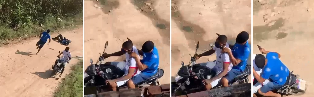 Um motociclista foi assaltado e baleado na tarde desta sexta-feira, dia 6, no Loteamento Carlos Bezerra, em São Caetano, no Agreste de Pernambuco. A ação criminosa foi filmada por um popular.
