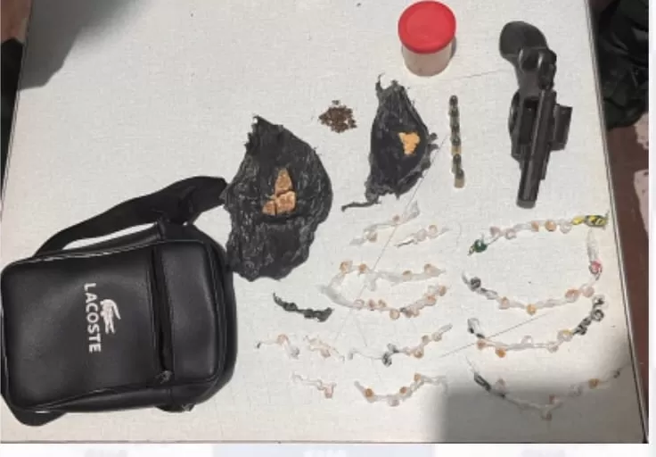 Os policiais seguiram os dois até a casa e, ao realizarem a abordagem, encontraram um dos indivíduos tentando esconder um objeto. Após uma inspeção, foi confirmado que o objeto era um revólver. Além da arma, foram descobertos entorpecentes no local.