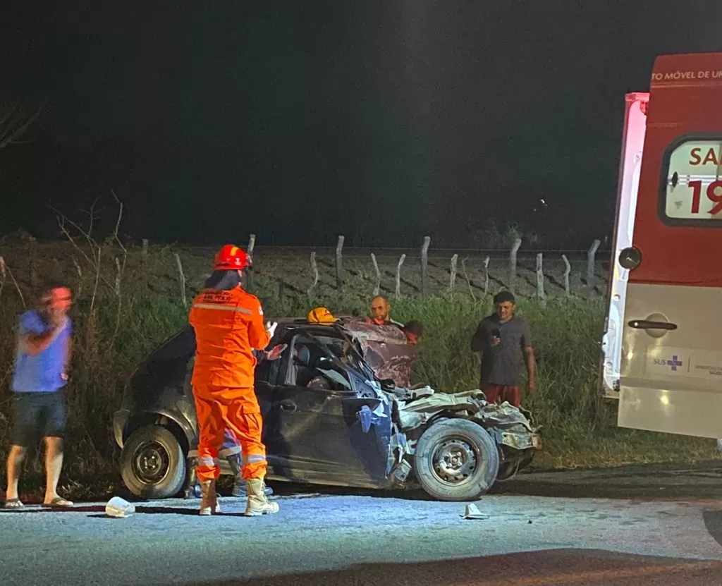 Willians Simão Leal, de 47 anos e José Jadson Santos de Lima, de 38 anos, trafegavam em um veículo Celta, quando bateram de frente com uma carreta, com o impacto da batida parte do veículo ficou destruído e as vítimas presas nas ferragens e foram retiradas pelo Corpo de Bombeiros.