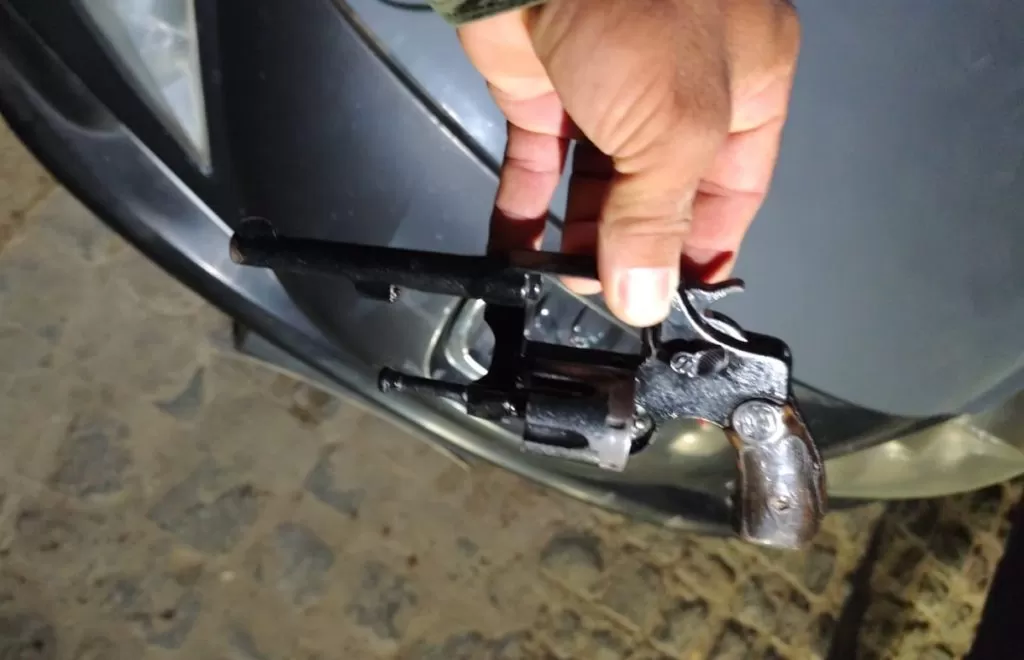 Durante a abordagem, uma das suspeitas informou aos policiais o paradeiro da arma de fogo usada no crime, indicando que o objeto havia sido deixado na casa de um conhecido em Correntes. A equipe policial deslocou-se até o endereço informado, onde o morador confirmou a presença da arma e revelou o local exato onde ela estava escondida. Com as informações, os policiais conseguiram apreender a arma.