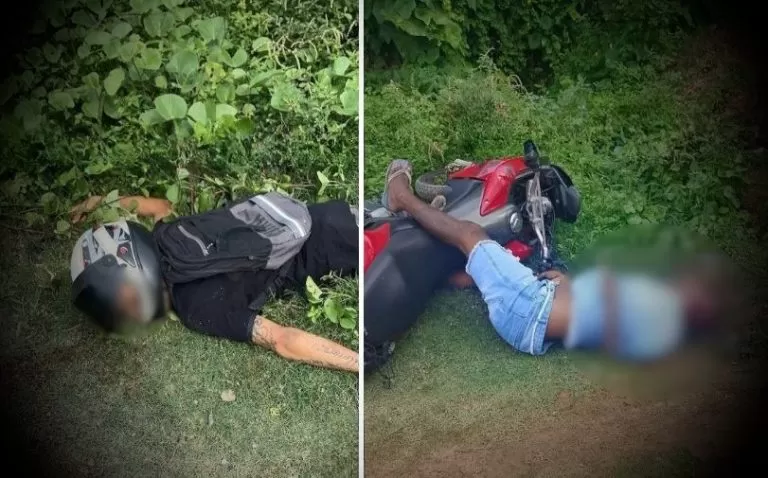 Os corpos foram encontrados em uma área de vegetação, ao lado de uma motocicleta. Segundo informações preliminares, não há detalhes sobre a autoria ou motivação do crime, que está sendo investigado pela Polícia Civil.