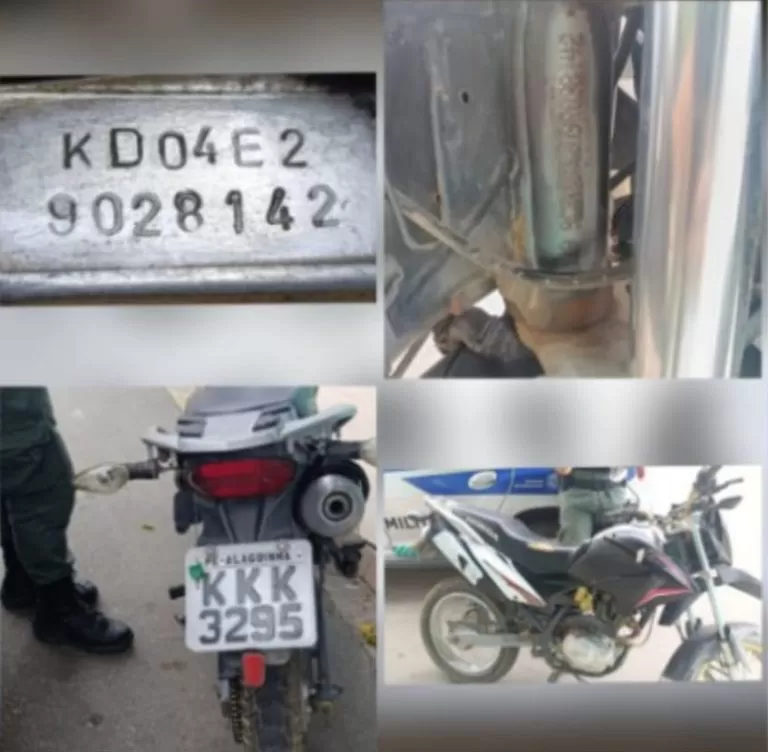 Na tarde desta quarta-feira (15), a Polícia Militar de Saloá, no Agreste de Pernambuco, apreendeu uma motocicleta Honda Bros com placa KKK-3295. Após uma inspeção minuciosa, foram constatadas irregularidades na numeração do chassi e do motor, levantando suspeitas sobre a procedência do veículo.