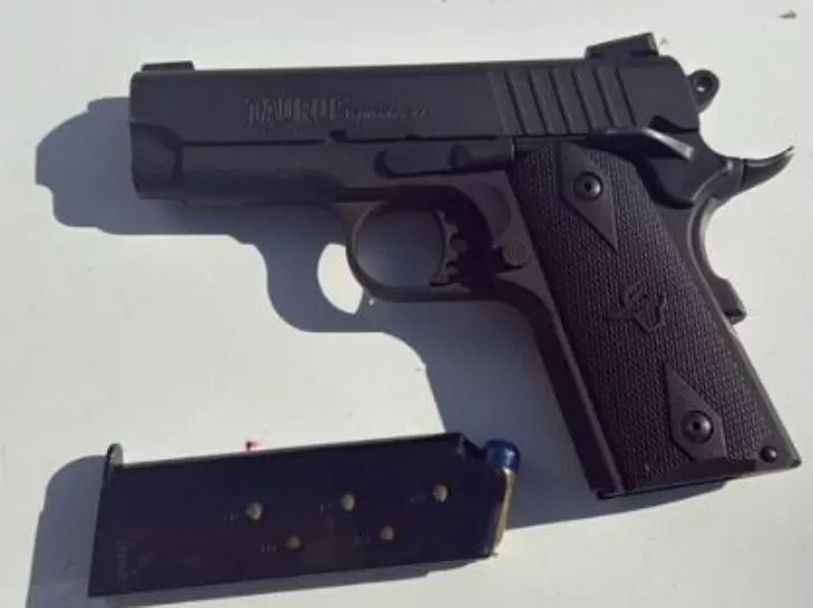 Os policiais deram ordem de parada ao condutor de uma caminhonete Dodge/RAM, que obedeceu imediatamente. Durante a fiscalização, os ocupantes do veículo foram questionados sobre a posse de armas de fogo, e todos negaram. Contudo, ao realizarem uma inspeção mais detalhada no veículo, os agentes localizaram uma pistola com seis munições no console central.