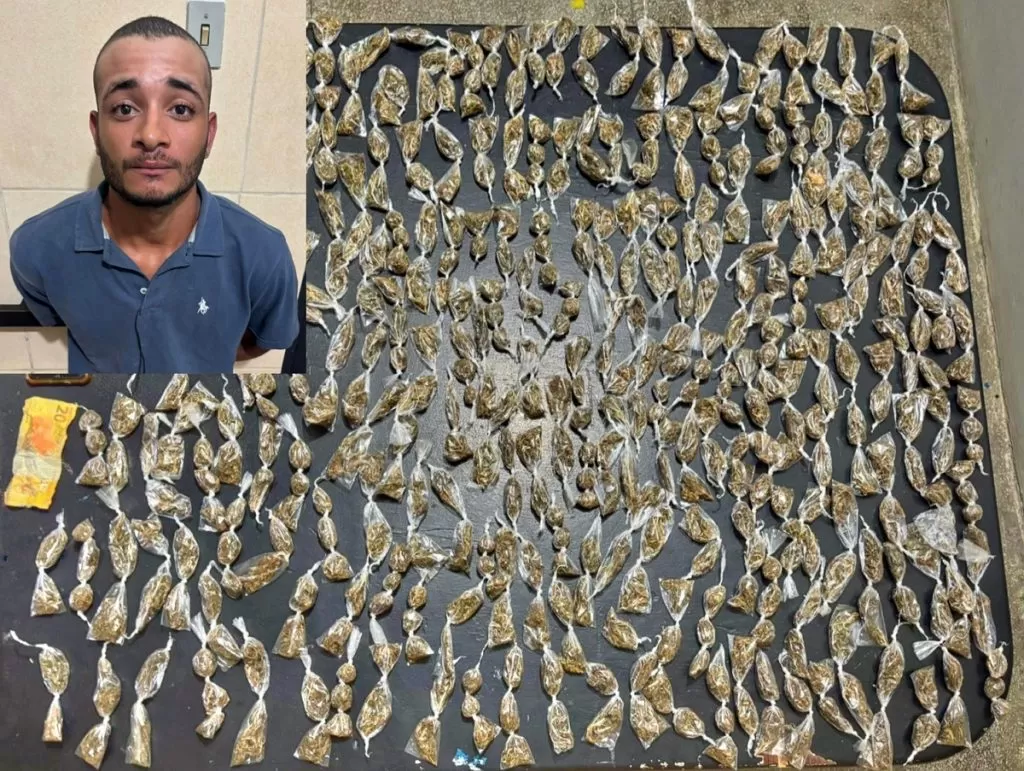 De acordo com a polícia, o suspeito tentou fugir de bicicleta ao perceber a aproximação da equipe, mas foi interceptado e abordado. Durante a revista, os policiais encontraram com ele uma bolsa contendo 501 porções de maconha, prontas para comercialização. Além disso, foram apreendidos uma bicicleta, um aparelho celular e R$ 20,00 em espécie.