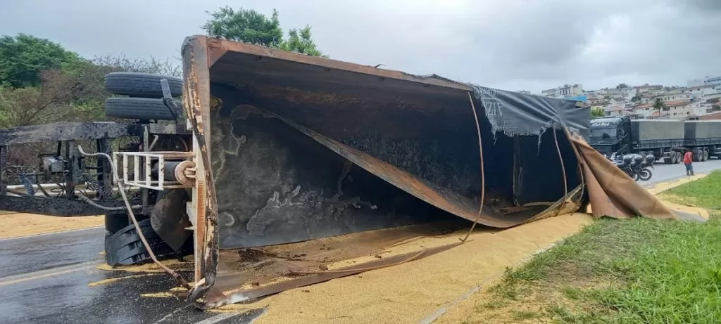 A rodovia foi liberada no início da tarde, após o destombamento do reboque e do semirreboque.
