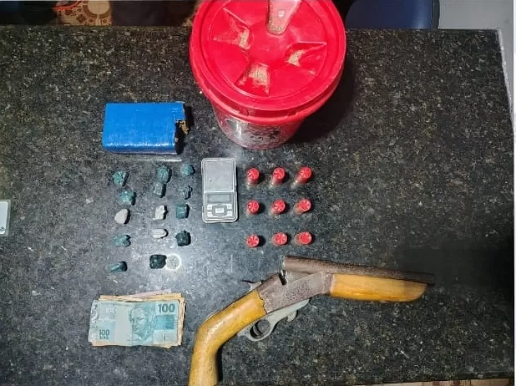 Durante rondas e abordagens na zona rural de Frei Miguelinho, policiais militares do 22º BPM apreenderam drogas e prenderam dois homens, no sábado(8), no Sítio Patos.