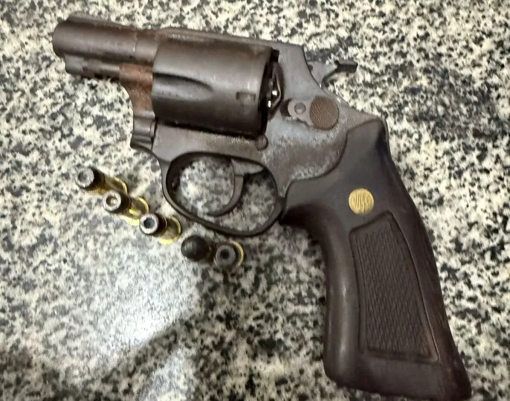 Ao questionar o proprietário do estabelecimento sobre a presença de materiais irregulares, ele negou. No entanto, após autorização do responsável, os policiais realizaram buscas no local e encontraram um revólver calibre 38 com cinco munições intactas e numeração suprimida dentro de uma gaveta do balcão.